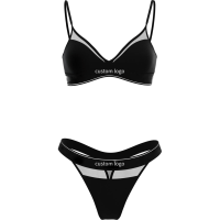 Black Tulled Women's Underwear Set | Triangle Cotton Set Of Bralette & Thong/Briefs | Adjustable Straps | Removable Pads